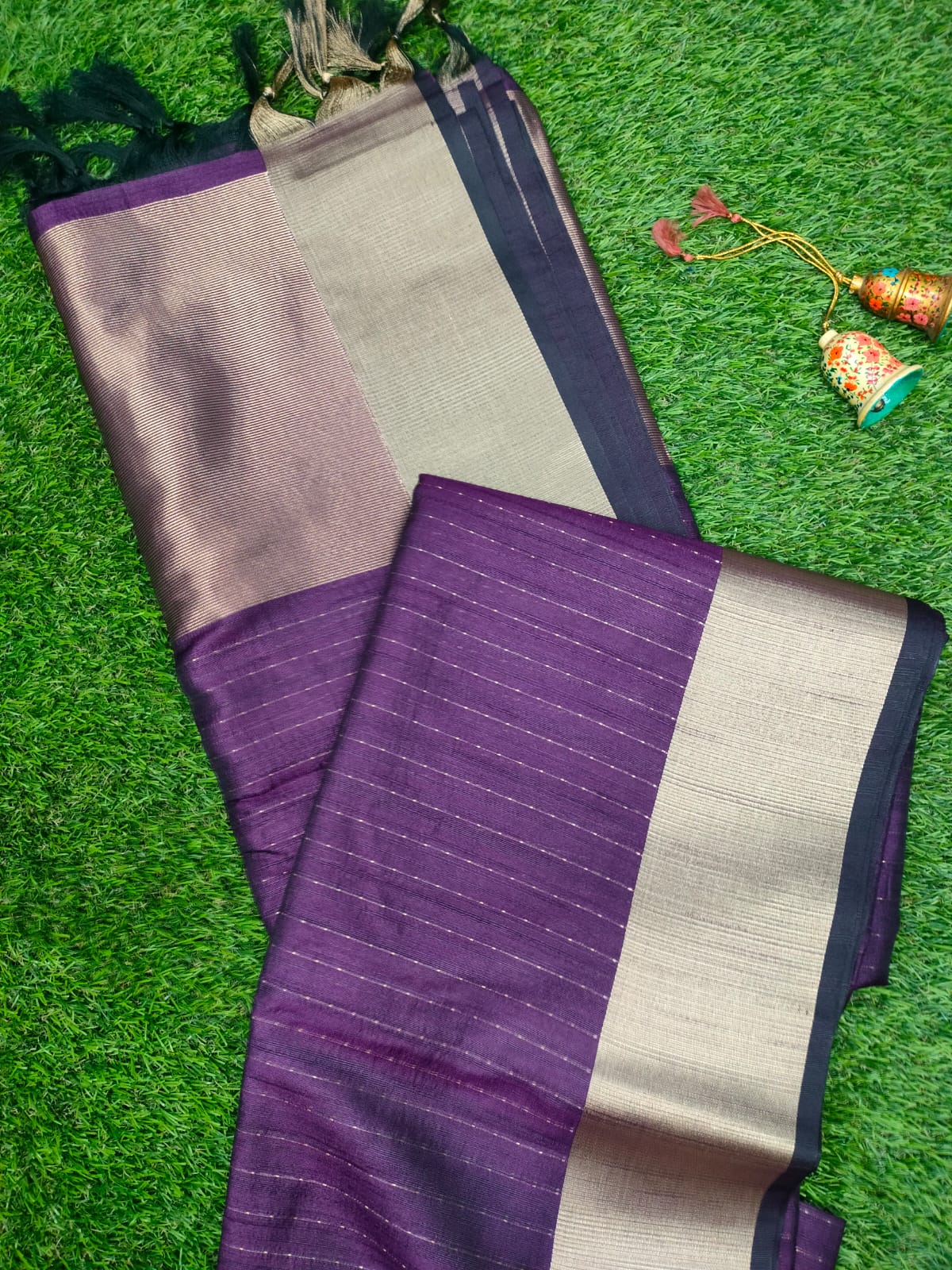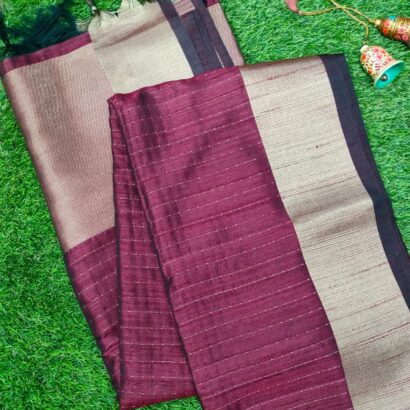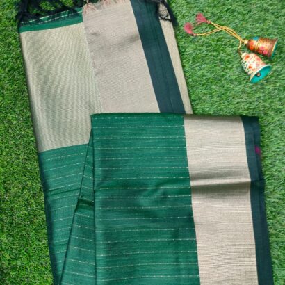 - Design: This saree features traditional motifs inspired by the rich heritage of Indian textiles. The body of the saree is adorned with intricate patterns, while the pallu (end of the saree) showcases a more elaborate design, often in contrasting colors. The saree comes with a distinctive border that enhances its elegance and adds to its regal appearance.